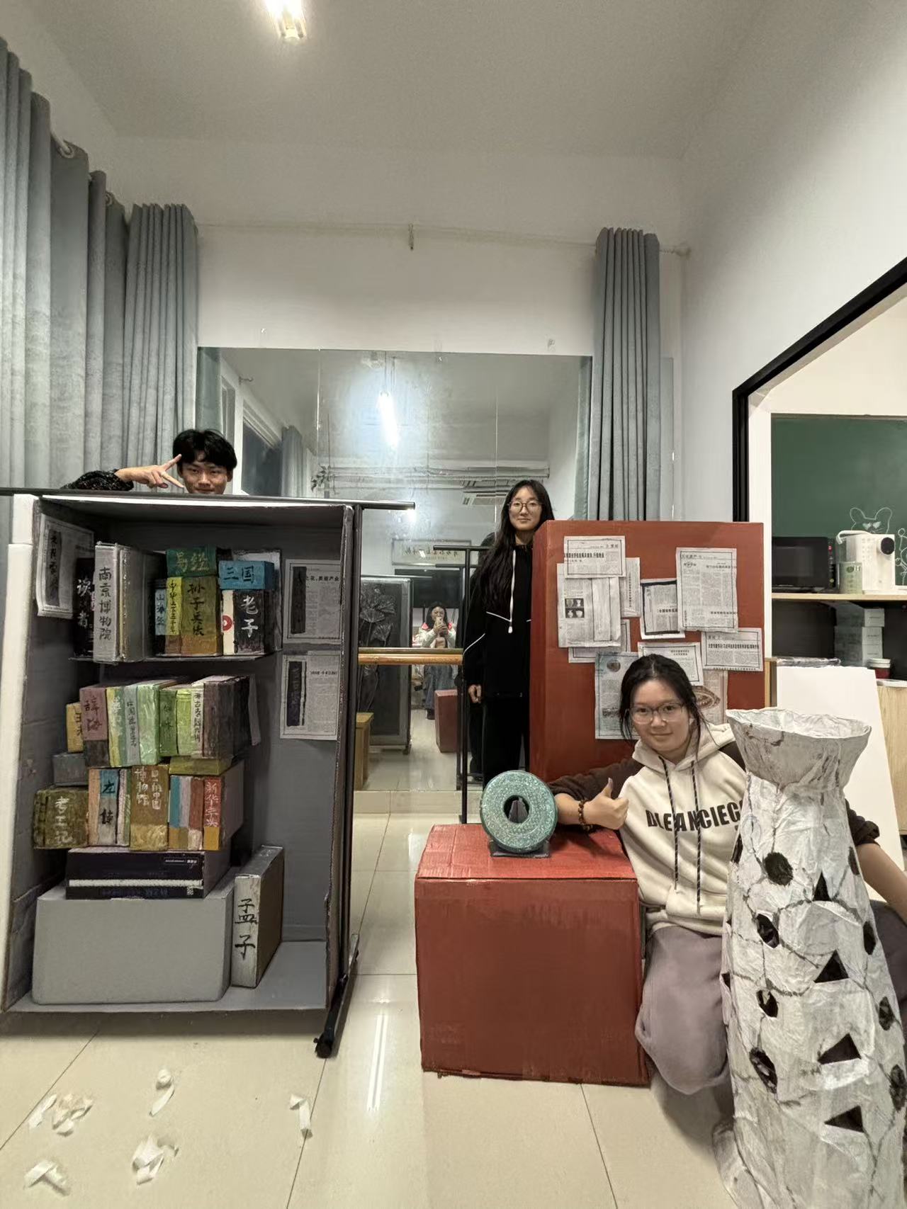 本次工作坊以“博物馆奇妙夜”为主题,旨在通过舞台道具创新设计,让收藏在博物馆里的文物、书写在古籍里的文字在舞台上“活”起来,让文化与艺术共舞。艺术与科技系孙玉萍老师担任工作坊指导老师,带领我院学生志愿者认真构思、精心制作、反复打磨,经过为期五天的辛勤准备,玉璧、陶器、古籍、海百合化石等舞台道具已栩栩如生。后续,这些道具将送往南京致远外国语小学,用于舞台剧表演。