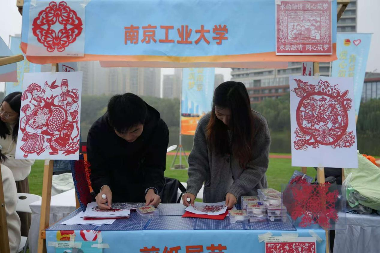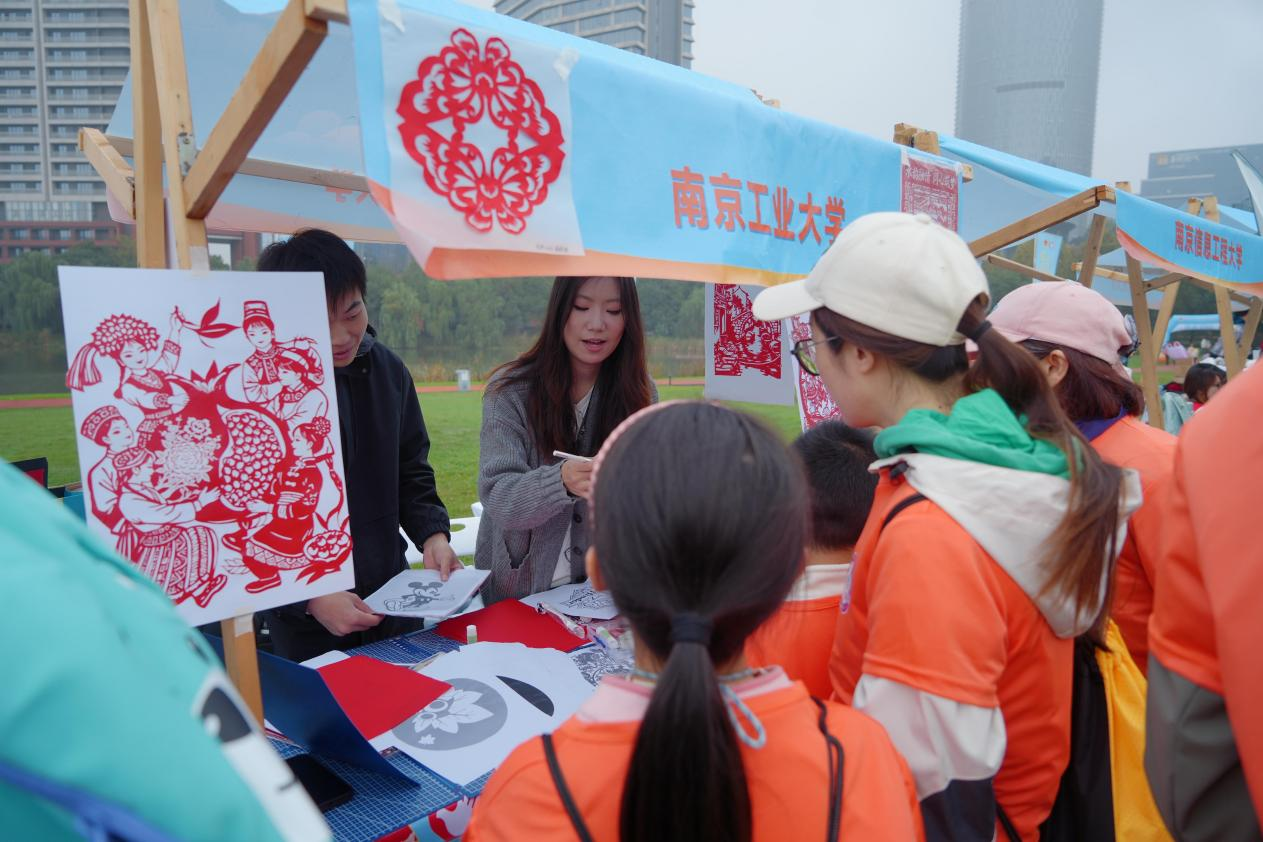 为深入贯彻落实习近平总书记关于弘扬中华优秀传统文化的重要论述,推动非物质文化遗产融入现代生活,11月9日上午,艺术设计学院“艺绘乡韵・非遗焕彩”美丽江苏建设志愿服务项目受邀参加由共青团南京市委、南京市委社会工作部、南京市青年志愿者协会主办的“爱心筑梦・青益南京”2025秋季南京青少年公益嘉年华,成功开展“剪纸展艺・文脉共传”主题互动活动。